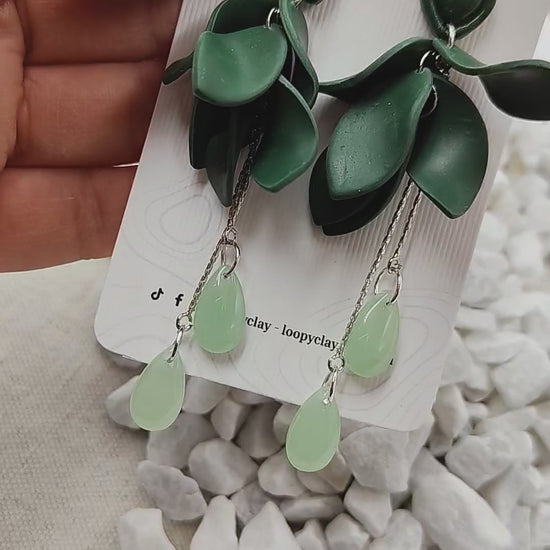 The "Essence Emerald" earrings are a statement of style dedicated to those who seek a distinctive and never banal elegance. The absolute protagonist is the deep emerald green hue of the upper petals, whose matte and silky finish gives the jewel a sober and sophisticated character.