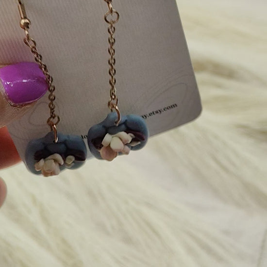 Drop Earrings Pumpkin and Blue Flower | Artisan Botanical Design