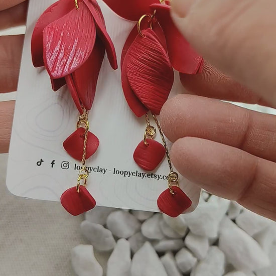 Ruby Petal Drop Earrings | Scarlet Red and Gold