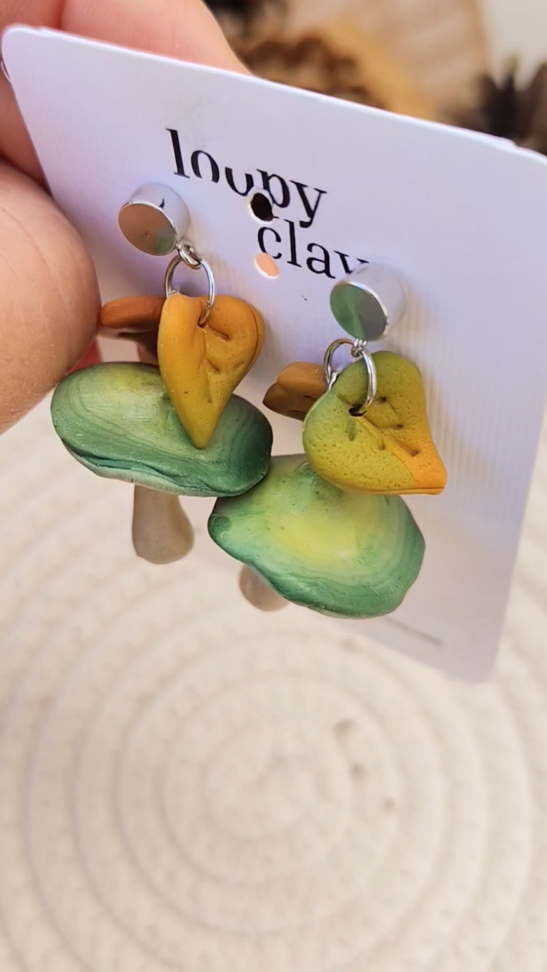 Un talismano di natura e speranza. Ispirati alle radure più segrete del bosco incantato, questi funghi pendenti in tonalità verde muschio evocano calma e connessione con la terra. Ogni cappello è punteggiato a mano e modellato per riflettere la bellezza spontanea dei sottoboschi alpini. Un accessorio per "anime green" che vogliono portare un pezzetto di foresta sempre con sé, con l'eleganza di un pezzo unico modellato con amore e precisione.